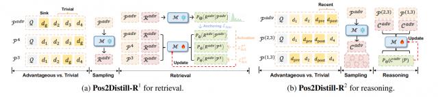 团队发现,位置偏差在"检索"和"推理"这两类任务中诱发的表现不同,因此基于上述核⼼原理,团队分别设计了两种专⻔的实现⽅案:Pos2Distill-R1 和 Pos2Distill-R2。
