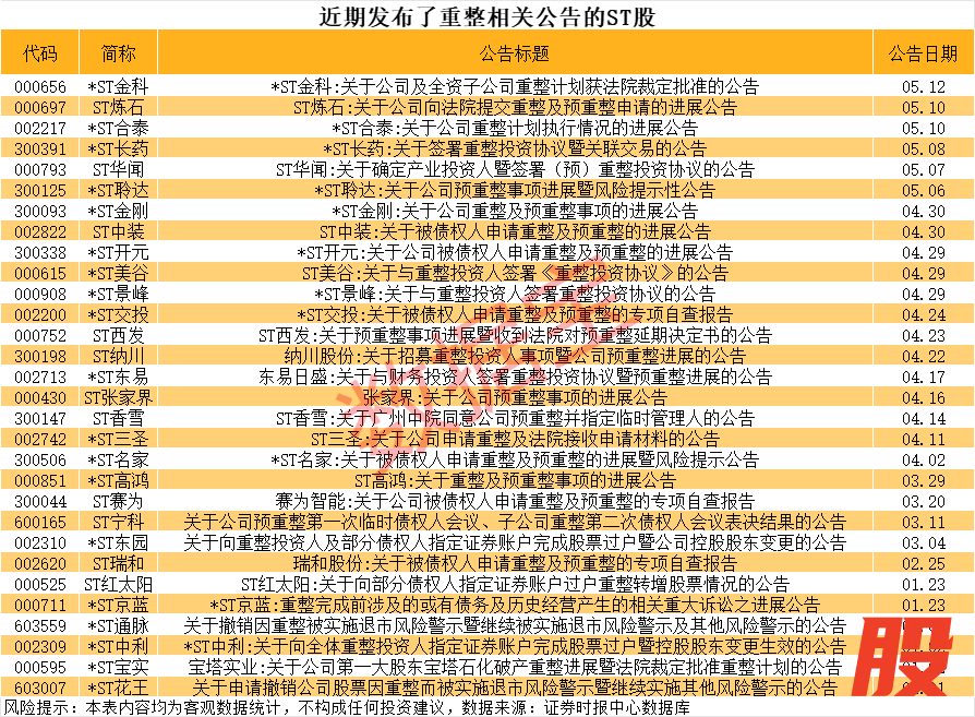 资产重组、破产重组的ST股曝光资产重组、破产重组的ST股曝光